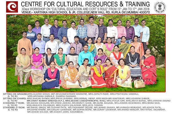 मुंबई: कार्तिका हाई स्कूल एवं ज्यूनियर काॅलेज, कुर्ला में ‘सांस्कृतिक स्रोत एवं प्रशिक्षण केंद्र‘ दिल्ली के तत्वावधान में ‘सांस्कृतिक शिक्षा और सी.सी.आर.टी. की भूमिका‘ विषय पर आयोजित तीन दिवसीय कार्यशाला संपन्न हुई। इस कार्यशाला में मुंबई जिला के 40 शिक्षकों ने सहभाग लिया।