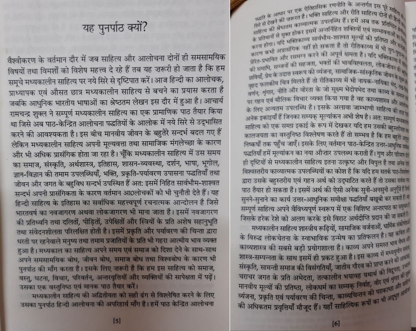 कार्यक्रम के आरंभ में मुंबई विश्वविद्यालय के हिंदी विभाग के प्रोफेसर एवं अध्यक्ष तथा पुस्तक के लेखक डॉ.करुणाशंकर उपाध्याय ने सभी अतिथियों एवं प्रतिभागियों का स्वागत करते हुए कार्यक्रम की प्रस्तावना रखी। इस पुस्तक के लेखन की पृष्ठभूमि पर चर्चा करते हुए उन्होंने बताया कि जब कोरोना कहर के कारण लॉकडाउन लगा तो उन्होंने समय का रचनात्मक उपयोग करते हुए इस पुस्तक की रचना की। हमें यह नहीं भूलना चाहिए कि जीवन में समय और ऊर्जा सदैव कम होते जाते हैं, अतः उनका अधिकतम दोहन करना चाहिए। आलोचक भी रचनाकार की तरह अपने समय और समाज की उपज होता है। हमें यह स्मरण रखना होगा कि गुण और परिमाण दोनों ही दृष्टियों से अत्यंत विपुल और उत्कृष्ट साहित्य भक्तिकाल में ही लिखा गया। वैश्वीकरण के इस दौर में जब उत्तराधुनिक पाठ-केन्द्रित आलोचना पद्धतियों का बोलबाला है तब यह जरूरी हो जाता है कि हम भी बदलते समय, समाज एवं संदर्भों के आलोक में संपूर्ण मध्यकालीन साहित्य का पुनर्पाठ तैयार करें। इसी उद्देश्य को ध्यान में रखकर यह पुस्तक लिखी गई है।