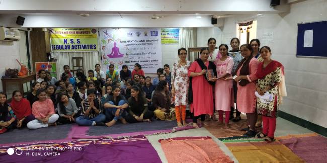 26 जून को एस.एन.डी.टी महिला विश्व-विद्यालय के फिजिकल एजुकेशन, NSS तथा स्टूडेंट्स वेलफ़ेयर के संयुक्त तत्वाधान में ‘ट्रैनिंग योगा डे प्रोटोकॉल’ कार्यक्रम के तहत कुमारी अंजली जोगलेकर, बीना पंड्या (फिजिकल एजुकेशन डिपार्टमेंट) और छात्रा शिवानी मुंगेकर ने भारत सरकार की आयुष मिनिस्ट्री के प्रोटोकॉल के अनुसार आसन की टैकनीक और मुद्राओं का परिचय देते हुए, जोगलेकर ने योगा का महत्व बताते हुए साँस लेने की प्रक्रिया, स्ट्रेचिंग और राइट पोस्चर आदि की जानकारी दी एवं