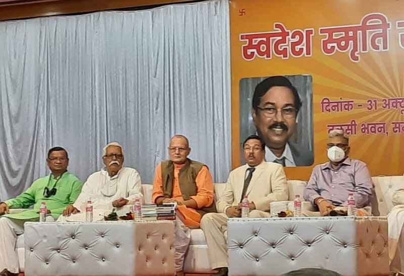 समारोह का आरंभ उपस्थित अतिथियों द्वारा मां सरस्वती के चित्र पर माल्यार्पण और दीप प्रज्ज्वलन से हुआ। प्रसन्न वदन मेहता ने स्वागत भाषण दिया और वंदे शंकर सिंह ने विषय की प्रस्तावना करते हुए मैक्समूलर और मैकाले के षडयंत्र की ओर ध्यान आकृष्ट किया। यमुना तिवारी व्यथित ने डाॅ.करुणाशंकर उपाध्याय के सम्मान में स्वरचित कविता पढ़ी और दिव्येंदु त्रिपाठी ने सम्मान पत्र का वाचन किया। डाॅ.करुणाशंकर उपाध्याय ने अपने वक्तव्य में स्वदेश प्रभाकर द्वारा स्वदेशी आंदोलन के प्रयासों की सराहना करते हुए कहा कि हमारे प्रधान मंत्री जिस आत्मनिर्भर भारत की संकल्पना की बात करते हैं, वह हिंदी और भारतीय भाषाओं के द्वारा ही संभव है। विकास का संबंध स्वभाषा से है। विश्व के सभी देशों ने अपनी भाषा में विकास किया है। यहां तक कि इजराइल जैसे छोटे से राष्ट्र ने हिब्रू में उच्चस्तरीय शोधकार्य करके एक दर्जन से अधिक नोबेल पुरस्कार जीते हैं। हमें इस लक्ष्य की प्राप्ति के लिए नई राष्ट्रीय शिक्षा नीति को उसकी मूल भावना के साथ लागू करना होगा।हम अपनी भाषा में ही नवाचार और विश्व स्तरीय मौलिक अनुसंधान कर सकते हैं।